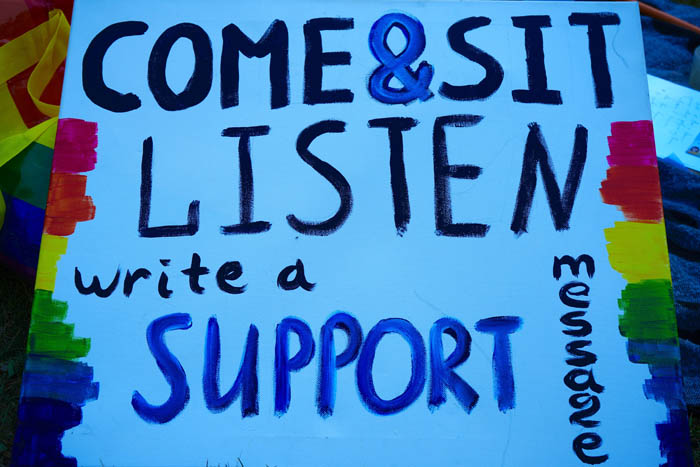 Люди приходили и уходили, за раз обычно не накапливалось больше десяти человек. Некоторые были уже осведомлены о ситуации в России, но таких было довольно мало. У многих были родственники из России, кто-то неплохо говорил по-русски. У людей, которые приходили к нам послушать интервью, была возможность написать поддерживающее сообщение для тех, кто сейчас живет в России. Вот сообщения, которые они написали (пунктуация и орфография сохранены, некоторые сообщения написаны иностранцами, которые учат русский):
