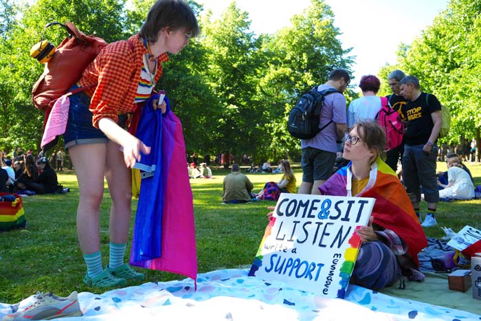 В столице Финляндии прошла акция “Russian LGBT+ voices”, организованная парой, бежавшей от репрессий в России