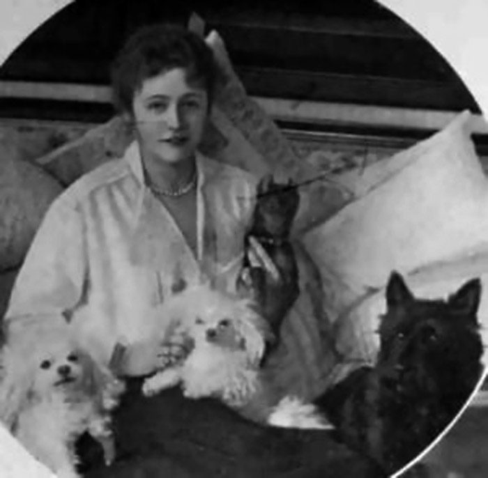 Фотография баронессы с любимцами: той-терьер «Плюш», мальтийские болонки «Пуф» и «Фифи» и шотландский терьер (их на тот момент во всей Империи было 3-4, стоили они баснословные суммы) «Дон-Максимилиан»