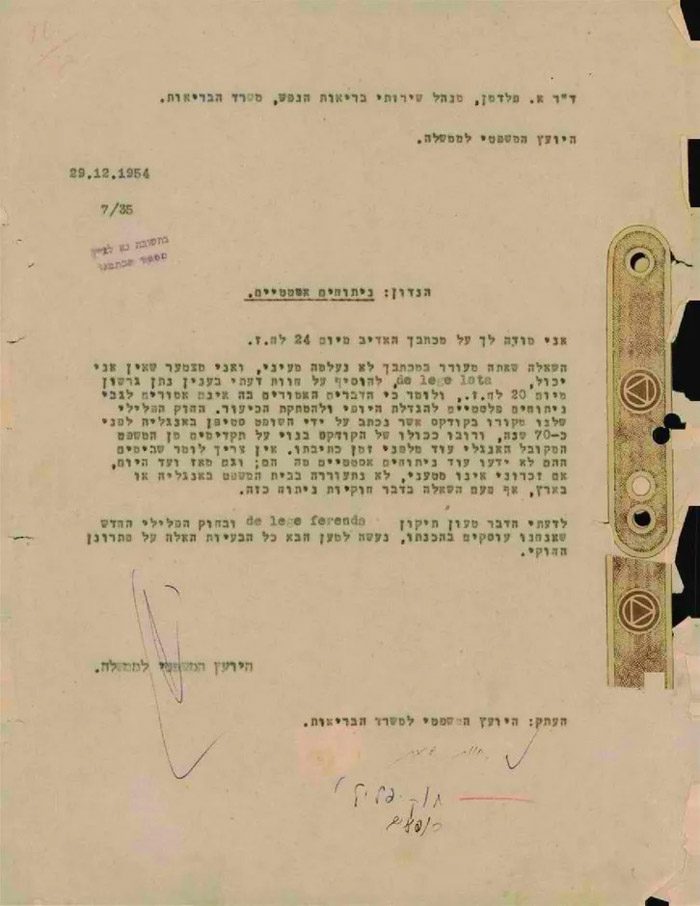 Через некоторое время после этого полиция снова задержала Рину, на этот раз ей пришили статью о нарушении общественного порядка, приговорив к испытательному сроку. Тогда Натан стала заниматься селф-хармом, а это мотивировало комитет минздрава рекомендовать провести ей операцию по коррекции пола ради её ментального здоровья. Но 29 декабря 1954 года против этого выступил генпрокурор Хаим Коэн. Запомните это имя.