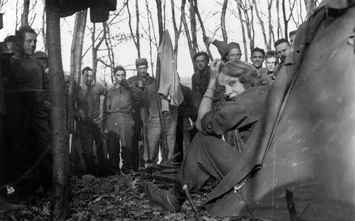 Когда же началась война, она и вовсе стала едва ли не самой активной звездой, помогавшей союзникам. Она агитировала покупать облигации военного займа и записывала американские песни на немецком языке для музыкальной пропаганды с целью деморализовать немцев. Более того, она выступила перед 250 тысячами американских солдат в США с 1942 по 1943 годы. А в 1944 и 1945 годах она выступала перед солдатами союзников в местах их базирования: Алжир, Италия, Великобритания, Франция и Нидерланды. Уайлдер и вовсе говорил, что она была на линии фронта чаще, чем Дуайт Эйзенхауер (Верховный главнокомандующий войсками союзников в Европе, потом он станет президентом США).