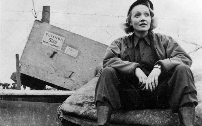 Когда же началась война, она и вовсе стала едва ли не самой активной звездой, помогавшей союзникам. Она агитировала покупать облигации военного займа и записывала американские песни на немецком языке для музыкальной пропаганды с целью деморализовать немцев. Более того, она выступила перед 250 тысячами американских солдат в США с 1942 по 1943 годы. А в 1944 и 1945 годах она выступала перед солдатами союзников в местах их базирования: Алжир, Италия, Великобритания, Франция и Нидерланды. Уайлдер и вовсе говорил, что она была на линии фронта чаще, чем Дуайт Эйзенхауер (Верховный главнокомандующий войсками союзников в Европе, потом он станет президентом США).
