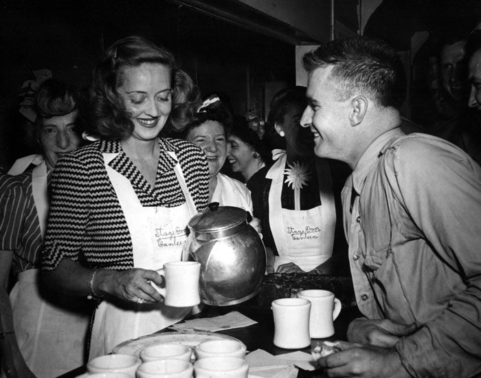 С началом войны Бетт Дейвис получила новый виток популярности. Продолжая играть в кино, она вместе с еще одной звездой Джоном Гарфилдом 3 октября 1942 года открыла «Hollywood Canteen» (Голливудская столовая) по адресу Cahuega Blvd 1451. В этом заведении солдат и ветеранов пускали и обслуживали абсолютно бесплатно. Дейвис и прочие знаменитости часто сами открывали двери для бойцов, а затем провожали их до столиков. В числе «сотрудников» были и Рита Хэйворт, и упомянутая Марлен Дитрих. Готовил крайне известный кино- и радио-шеф-повар, Джозеф Милани. Обслуживали и гражданских, но проще, без такой почтительности, причём билеты были недёшевы. Кафе было убыточным, существовало исключительно на пожертвования и гонорары артистов. На студии, Warner Brothers, которые сделали Дейвис чуть ли не своей рабыней, в 1944 был снят мюзикл «Hollywood Canteen» о заведении. 40 процентов прибыли с проката пошла на содержание кафе, а фильм оказался четвёртым по сборам в год выхода. С концом войны кафе было закрыто. А в 1980 Бетт Дейвис получила от Министерства Обороны медаль за выдающуюся гражданскую службу именно в награду за «Голливудскую столовую».