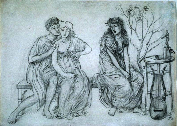 Постепенно Соломон уходит от прерафаэлитов к классицистам и эстетам. В этом направлении он начинает исследовать свою сексуальность: лесбийский сюжет “Сапфо и Эринна в митиленском саду” (1864) и “Эринна отнята у Сапфо” (1865), гейская графика “Любовь у мальчиков-школьников” (1865) и “Сократ и Агатодемон” (1865) и бисексуальная сценка “Жених, невеста и грустная любовь” (1865).