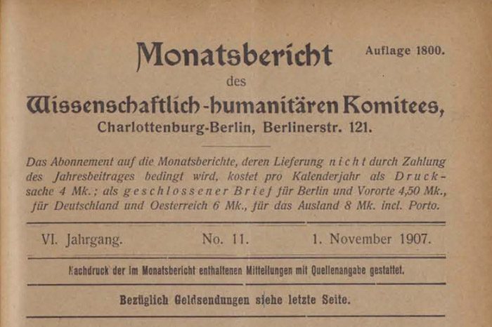 В следующий раз Марсель Телье фигурирует в ежемесячном отчёте Научно-гуманитарного Комитета от 1 ноября 1907. Научно-гуманитарный Комитет — организация немецкого сексолога Магнуса Хиршфельда, занимавшаяся борьбой за права ЛГБТ и женщин. В 1920-е года Марсель Телье даже станет одним из председателей Комитета. В этом отчёте рассказывается об аутинге Телье и приводится доклад, который читал француз: