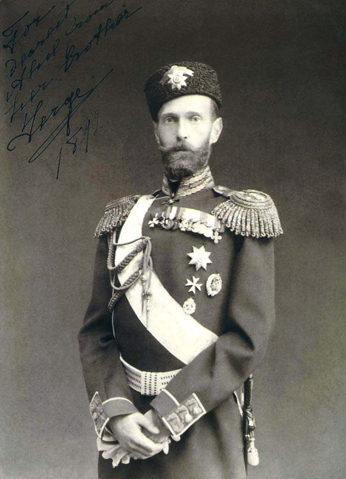 Великий князь Сергей Александрович (1857 — 1905) был четвёртым сыном Александра II. Участвовал в русско-турецкой войне 1877 — 1878, за отличие при рекогносцировке у села Кошево в Болгарии награждён орденом Св. Георгия 4-й степени, затем служил в лейб-гвардии Преображенском полку, в 1887 году был назначен его командиром.